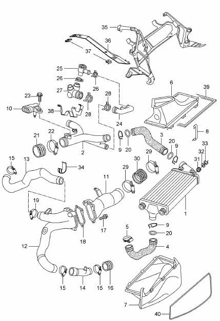 - 中冷器:降低压缩空气进入发动机之前的温度,改善燃烧并防止爆震。