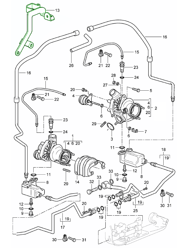 - 适用于保时捷车型的涡轮增压器、中冷器及相关零件。