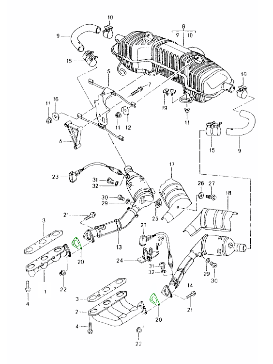 位于使用 M96 / M97 / M98 发动机的保时捷车型的歧管 / 热交换器和催化转换器 / 排气管连接之间。
