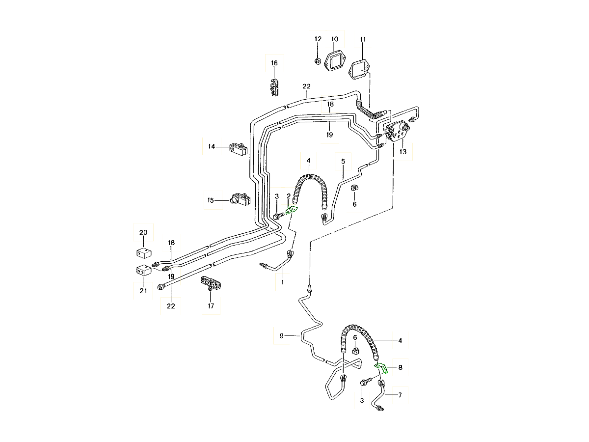 brake lines, front axle, underbody, vacuum line for 986 Boxster 1997-04 604-10