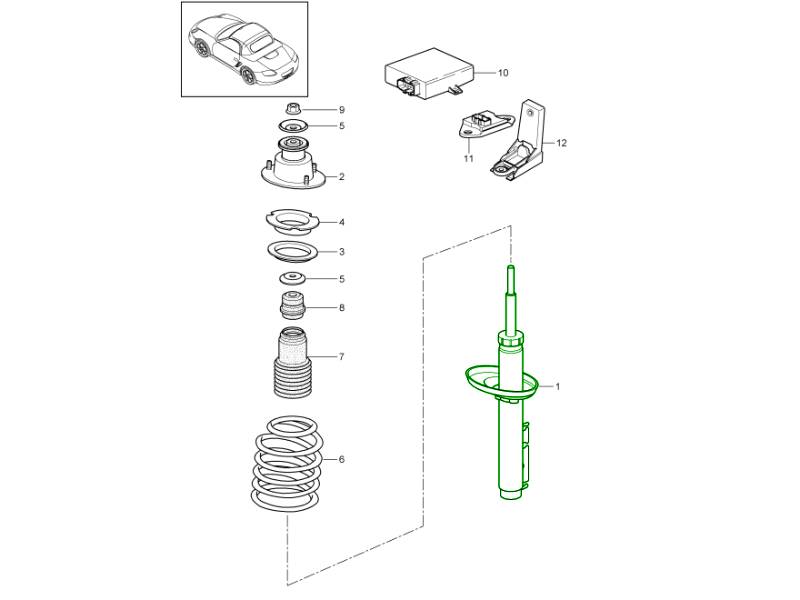 正品保时捷后减震器 98133303596 是保时捷 981/718 Boxster Spyder 和配备 PASM 的 Cayman GT4 车型所使用的原厂指定减震器。为确保悬架性能平衡,建议始终成对更换减震器。